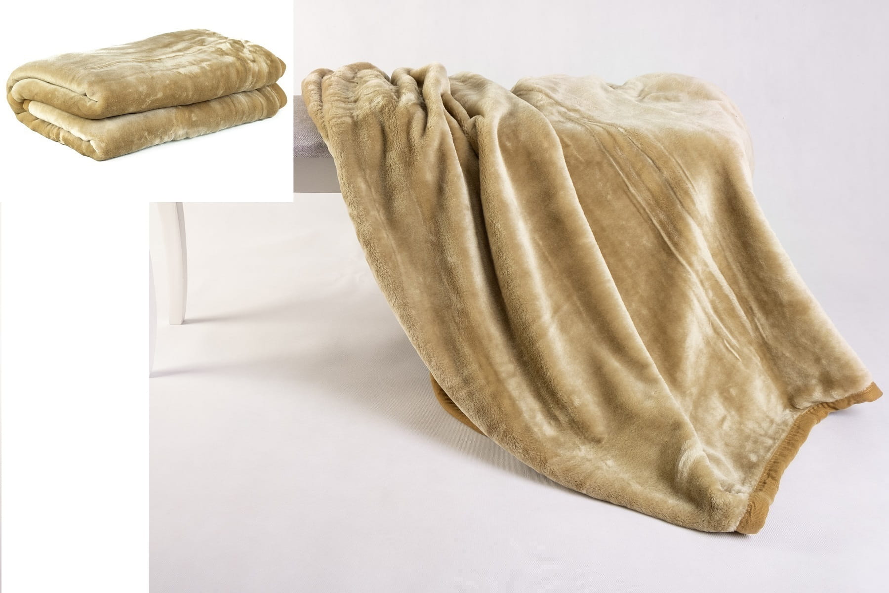 Koc akrylowy jednobarwny 160x200cm gruby ciepły ECRU