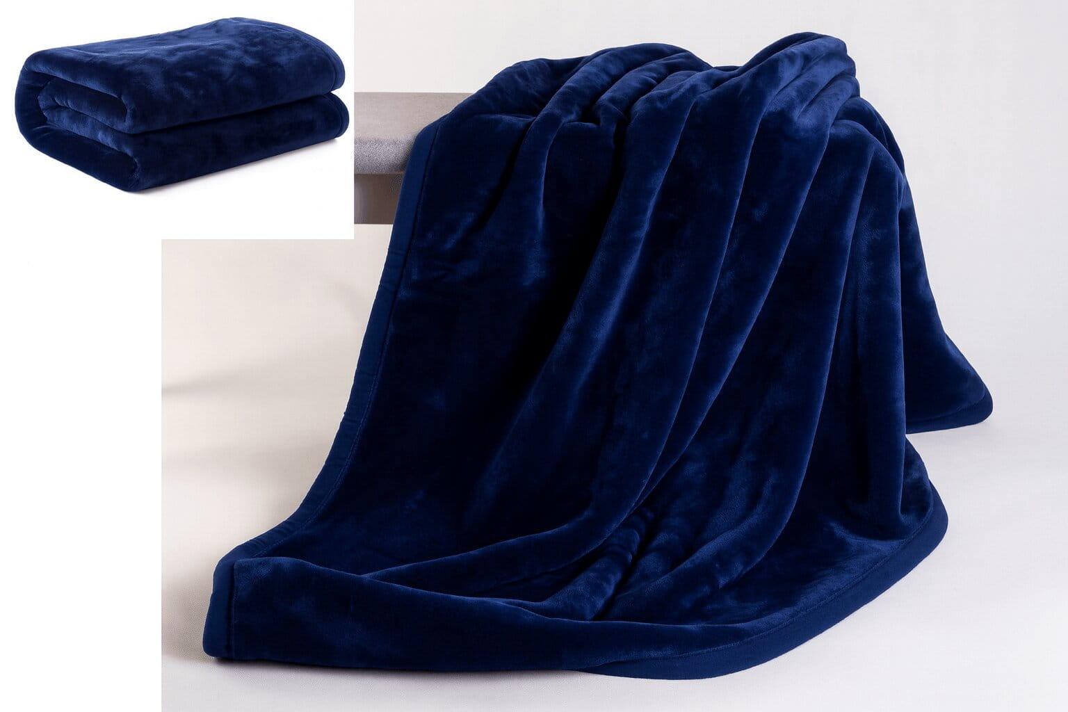 Koc akrylowy jednobarwny 160x200cm gruby ciepły GRANATOWY