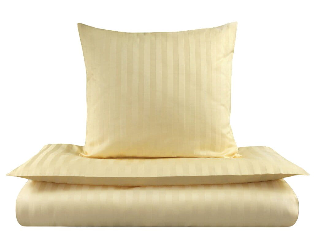 Nadaj swojej sypialni wyjątkowy wygląd dzięki pościeli z adamaszku w pięknym, złotym kolorze. Miękka i przyjemna w dotyku tkanina z delikatnym wzorem satynowych pasów sprawi, że każda noc będzie pełna komfortu. Idealna dla osób, które cenią sobie styl i jakość snu.
