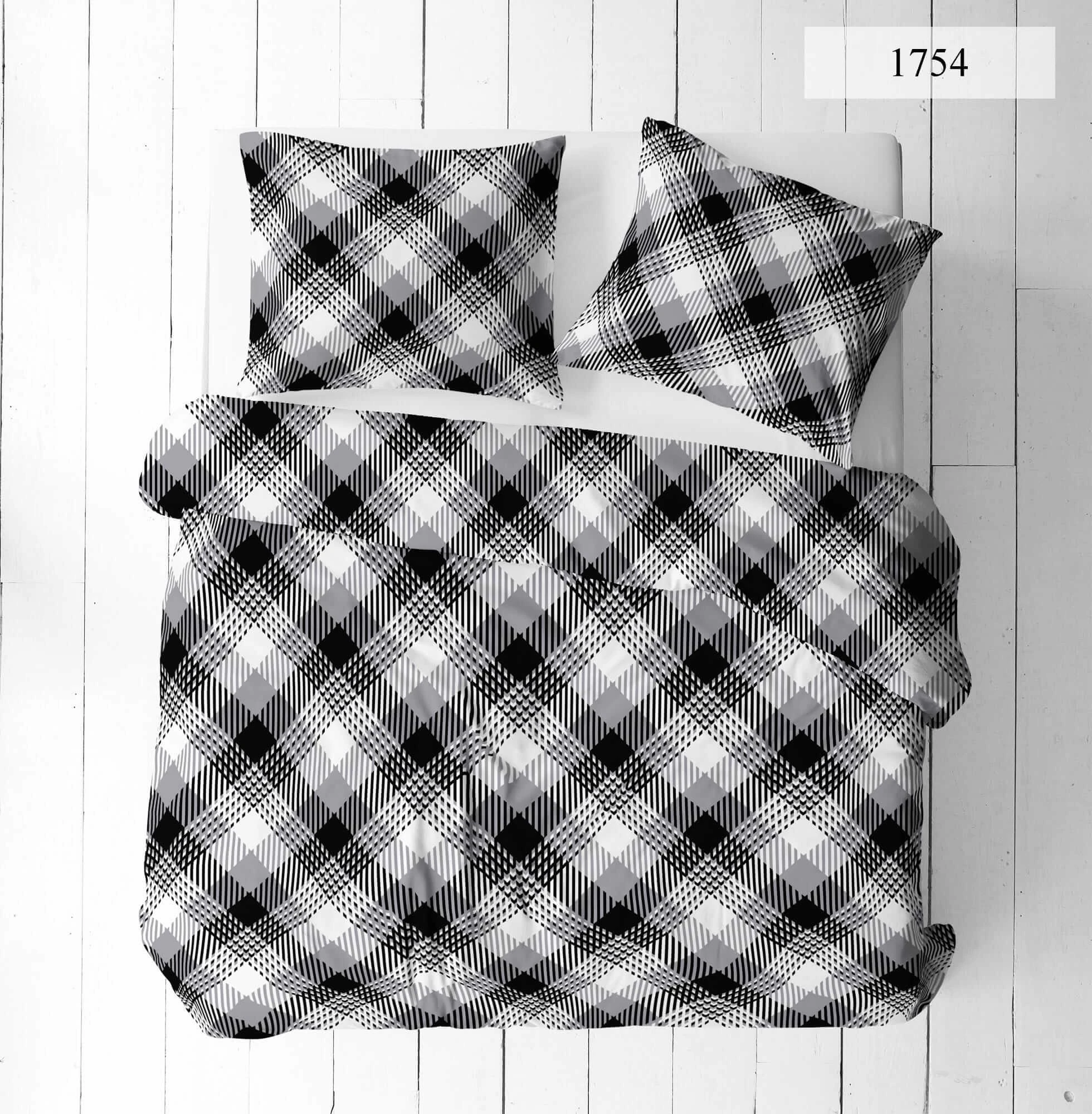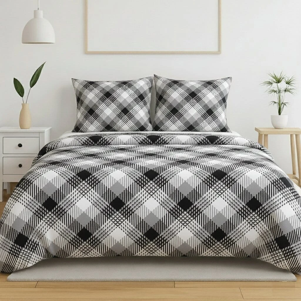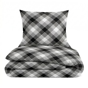 Komplet pościeli bawełnianej 140x200 + 1 szt. Poszewka 70x80 SUWAK 100% bawełna CZARNO BIAŁA KRATKA