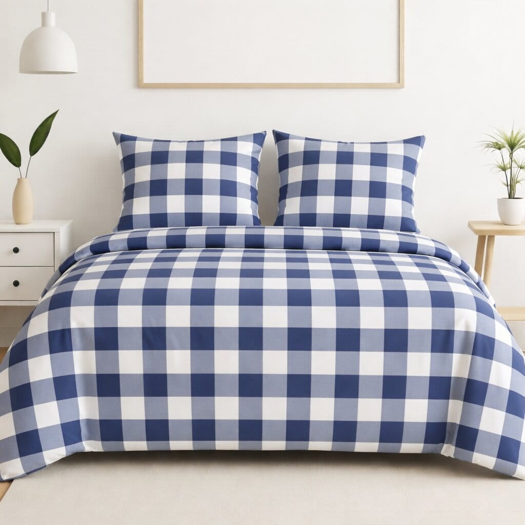 Komplet pościeli bawełnianej 140x200 + 1 szt. Poszewka 70x80 SUWAK 100% bawełna KRATKA NIEBIESKO BIALA