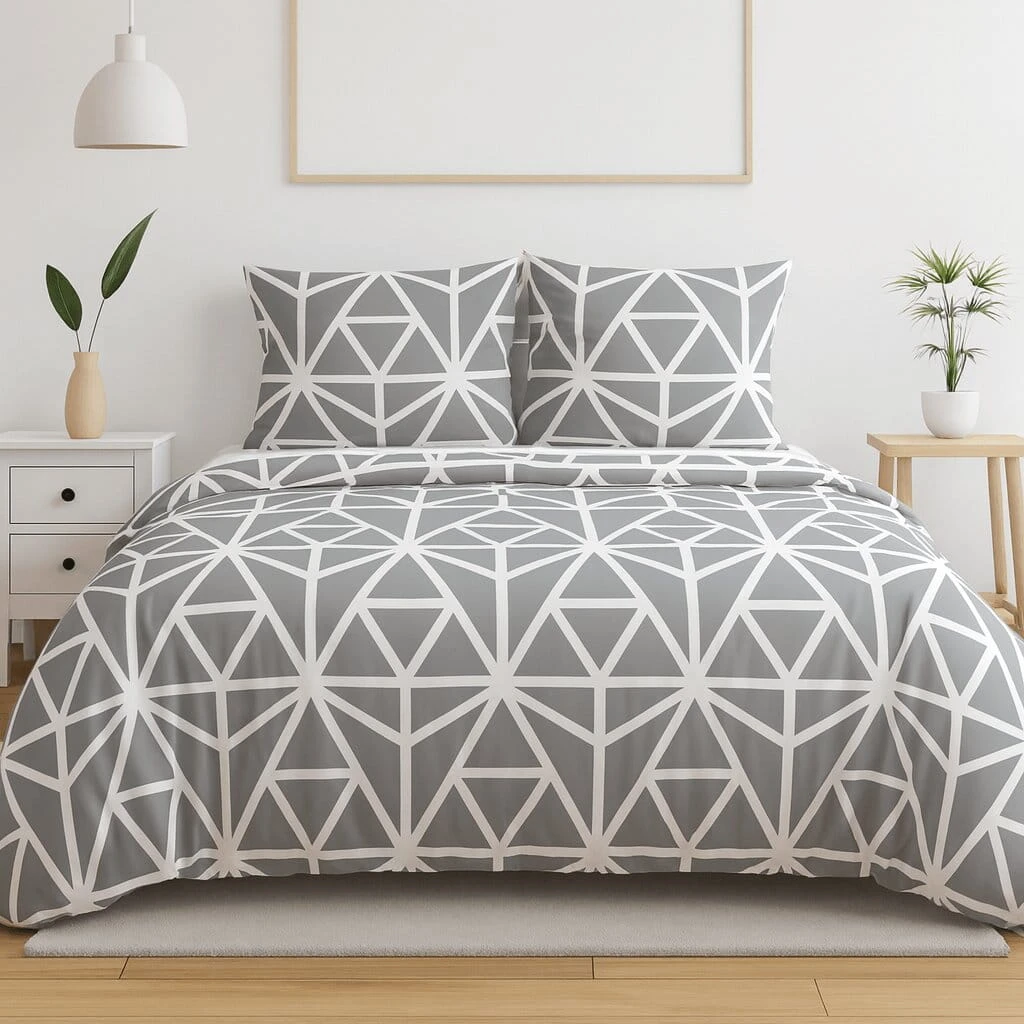 Komplet pościeli bawełnianej 140x200 + 1 szt. Poszewka 70x80 SUWAK 100% bawełna POPIELATA MOZAIKA