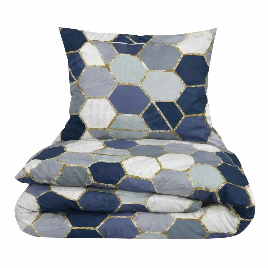 Komplet pościeli bawełnianej 140x200 + 1 szt. Poszewka ZAKŁADKA 100% bawełna GRANATOWE PLASTRY MIODU