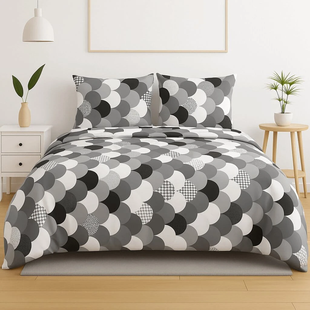 Komplet pościeli bawełnianej 140x200 + 1 szt. Poszewka ZAKŁADKA 100% bawełna POPIELATE KOŁA