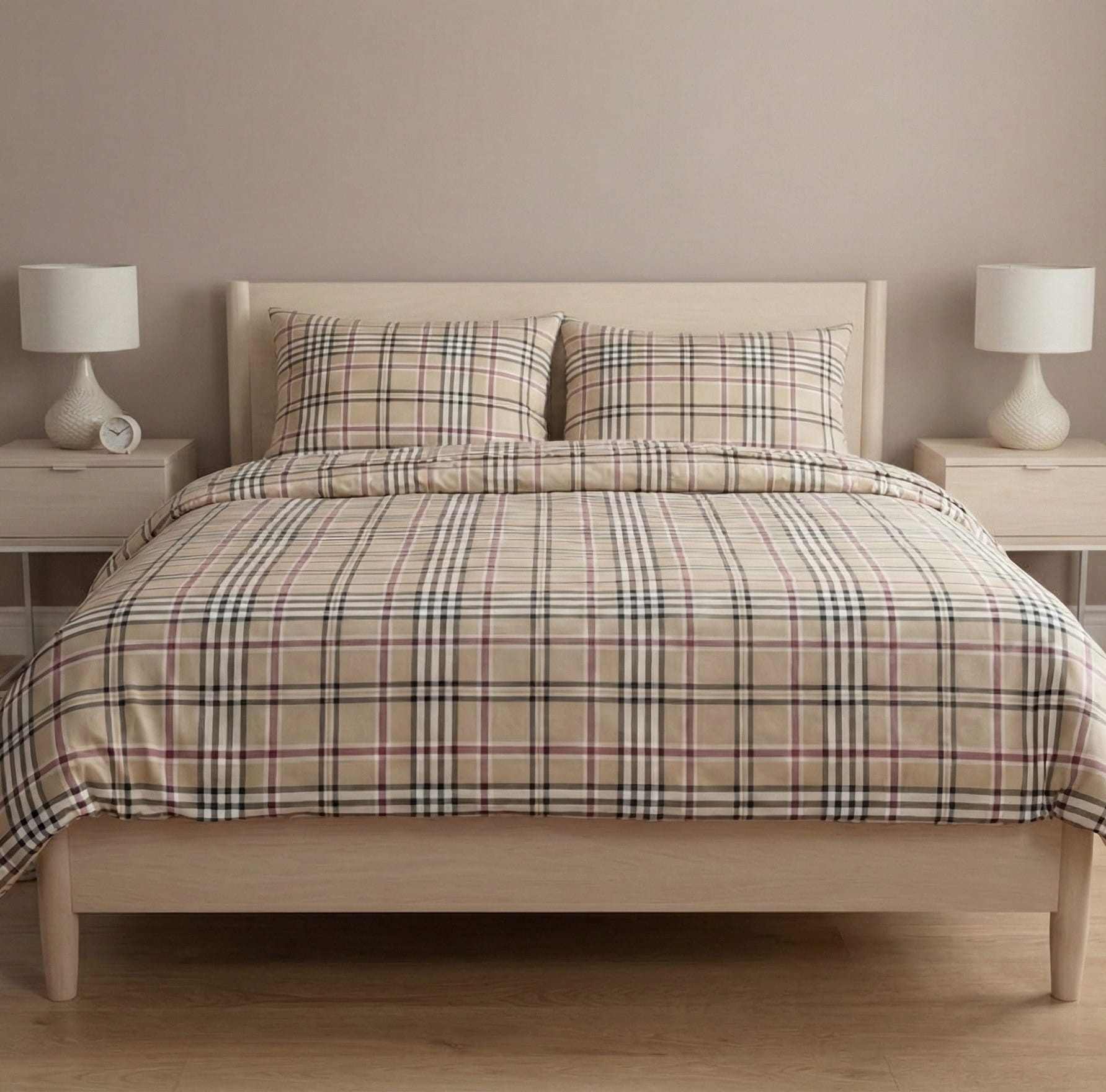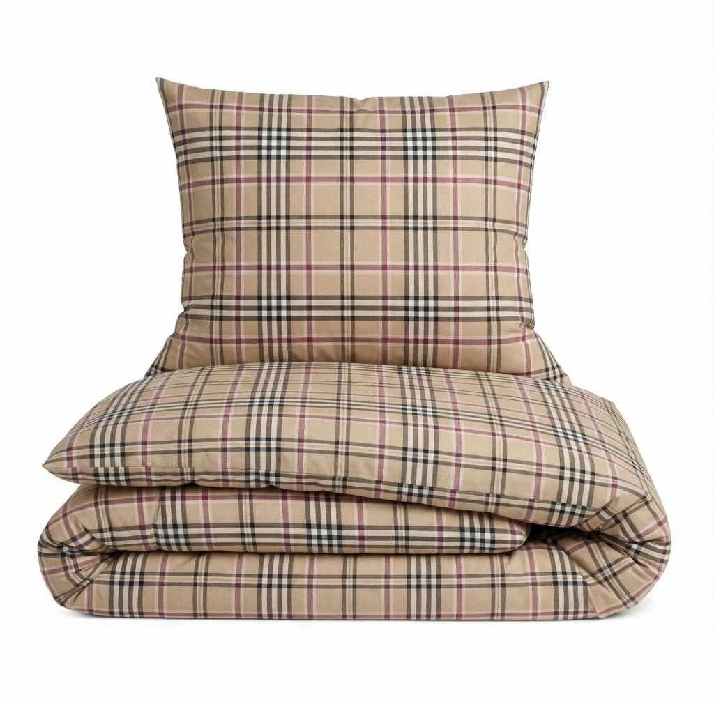 Komplet pościeli bawełnianej 160x200 + 2 szt. Poszewka 70x80 SUWAK 100% bawełna BIAŁO BEŻOWA KRATKA