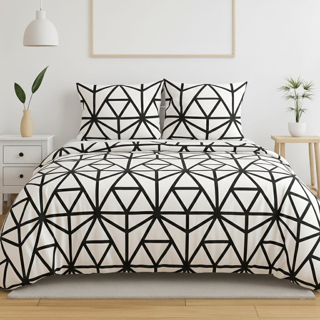 Komplet pościeli bawełnianej 160x200 + 2 szt. Poszewka 70x80 SUWAK 100% bawełna BIAŁO CZARNA MOZAIKA