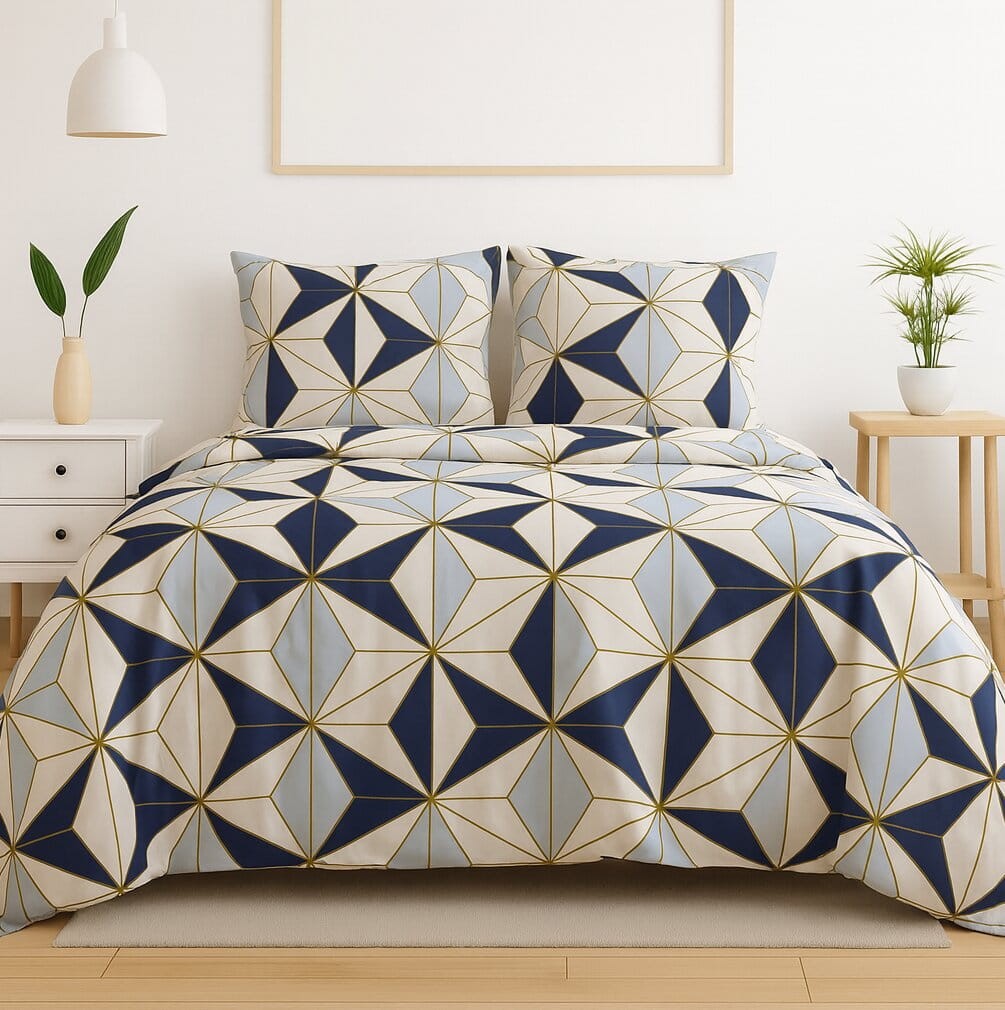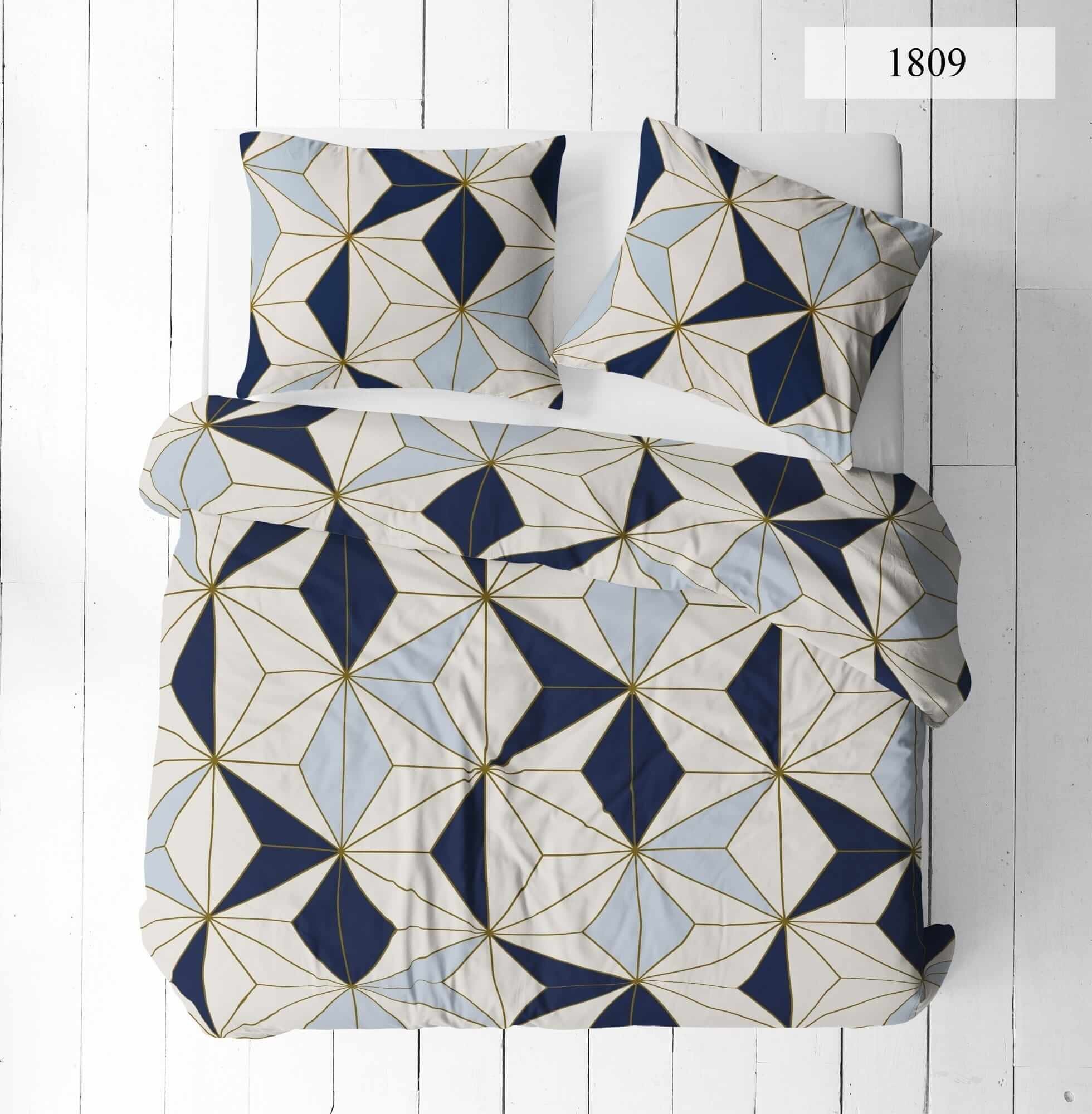 Komplet pościeli bawełnianej 160x200 + 2 szt. Poszewka 70x80 SUWAK 100% bawełna BŁĘKITNA MOZAIKA