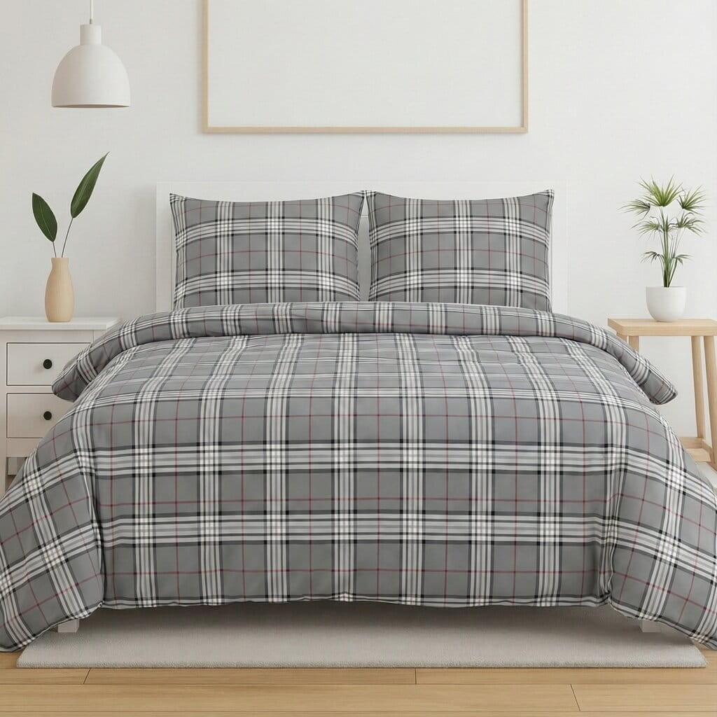 Komplet pościeli bawełnianej 160x200 + 2 szt. Poszewka 70x80 SUWAK 100% bawełna KRATKA OXFORD