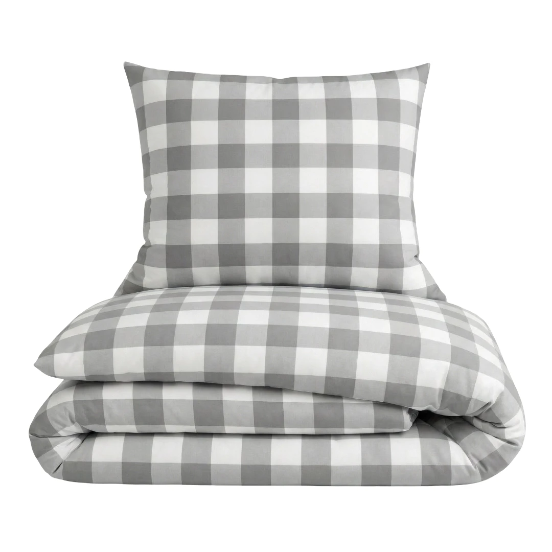 Komplet pościeli bawełnianej 160x200 + 2 szt. Poszewka 70x80 SUWAK 100% bawełna KRATKA SZARO BIAŁA
