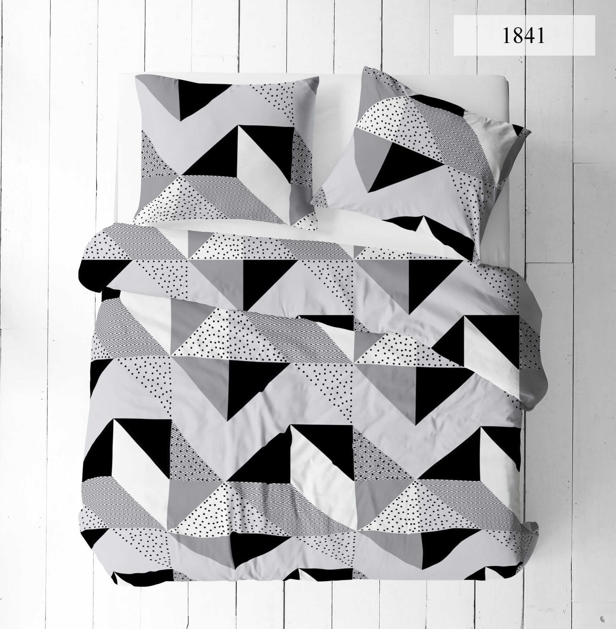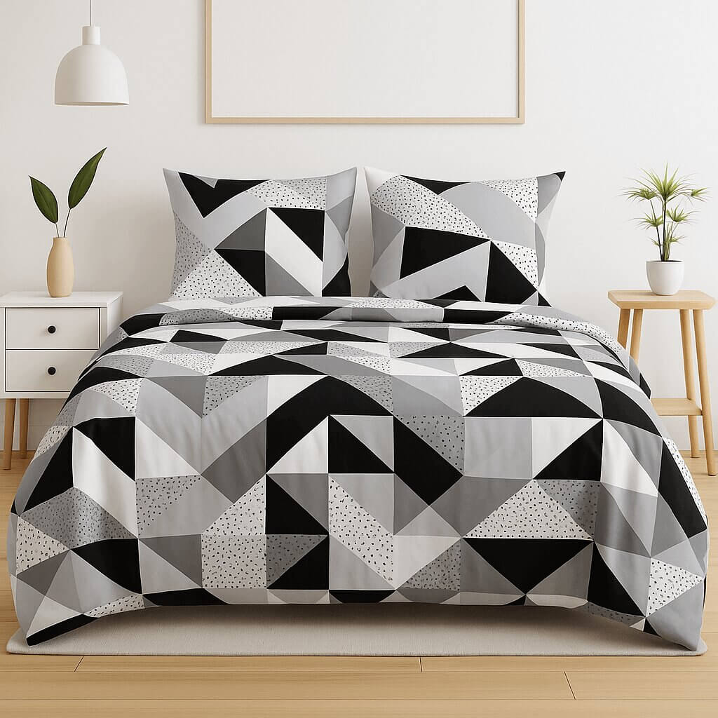 Komplet pościeli bawełnianej 160x200 + 2 szt. Poszewka 70x80 SUWAK 100% bawełna POPIELATE TRÓJKĄTY