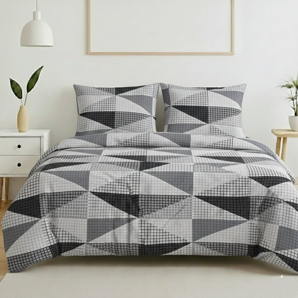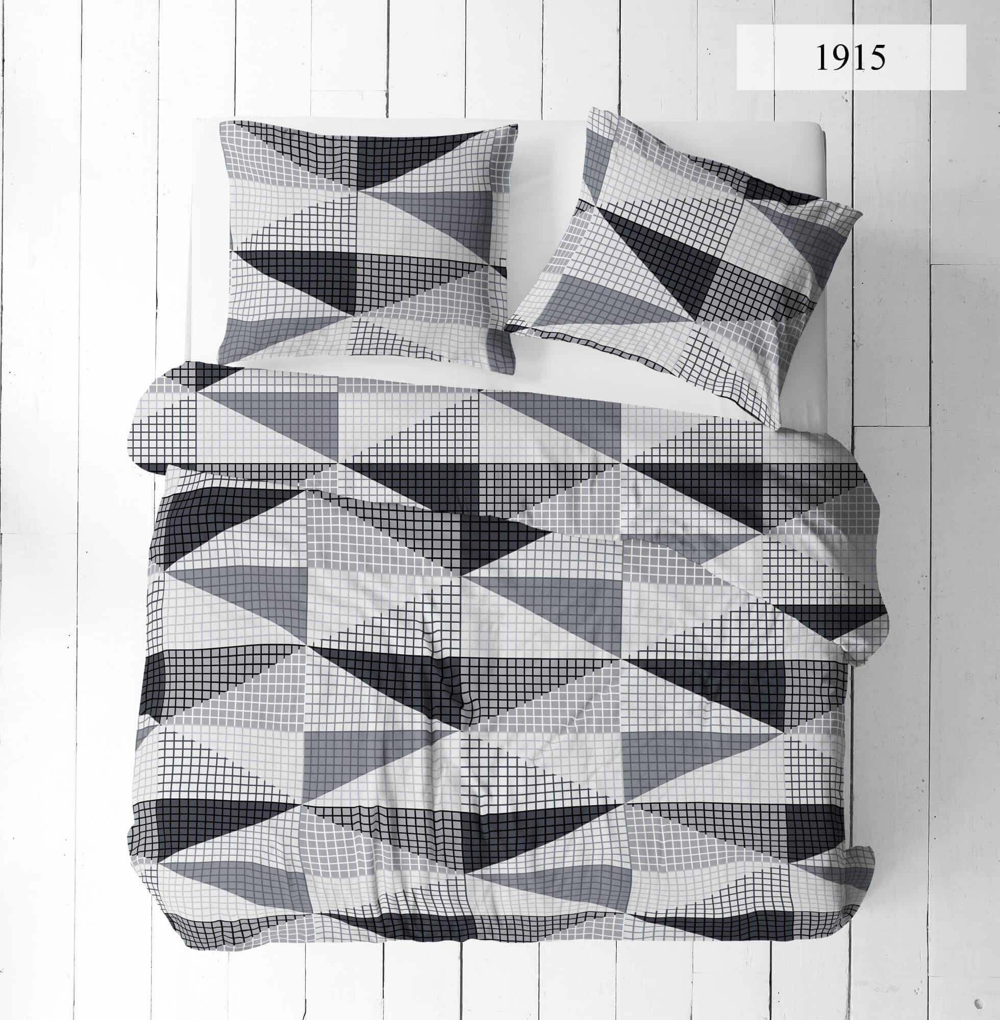 Komplet pościeli bawełnianej 160x200 + 2 szt. Poszewka 70x80 SUWAK 100% bawełna SZARE TRÓJKĄTY