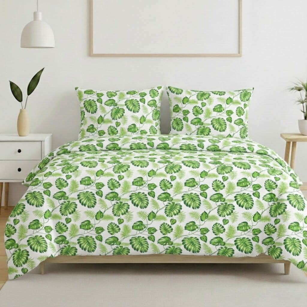 Komplet pościeli bawełnianej 160x200 + 2 szt. Poszewka 70x80 SUWAK 100% bawełna ZIELONE LIŚCIE
