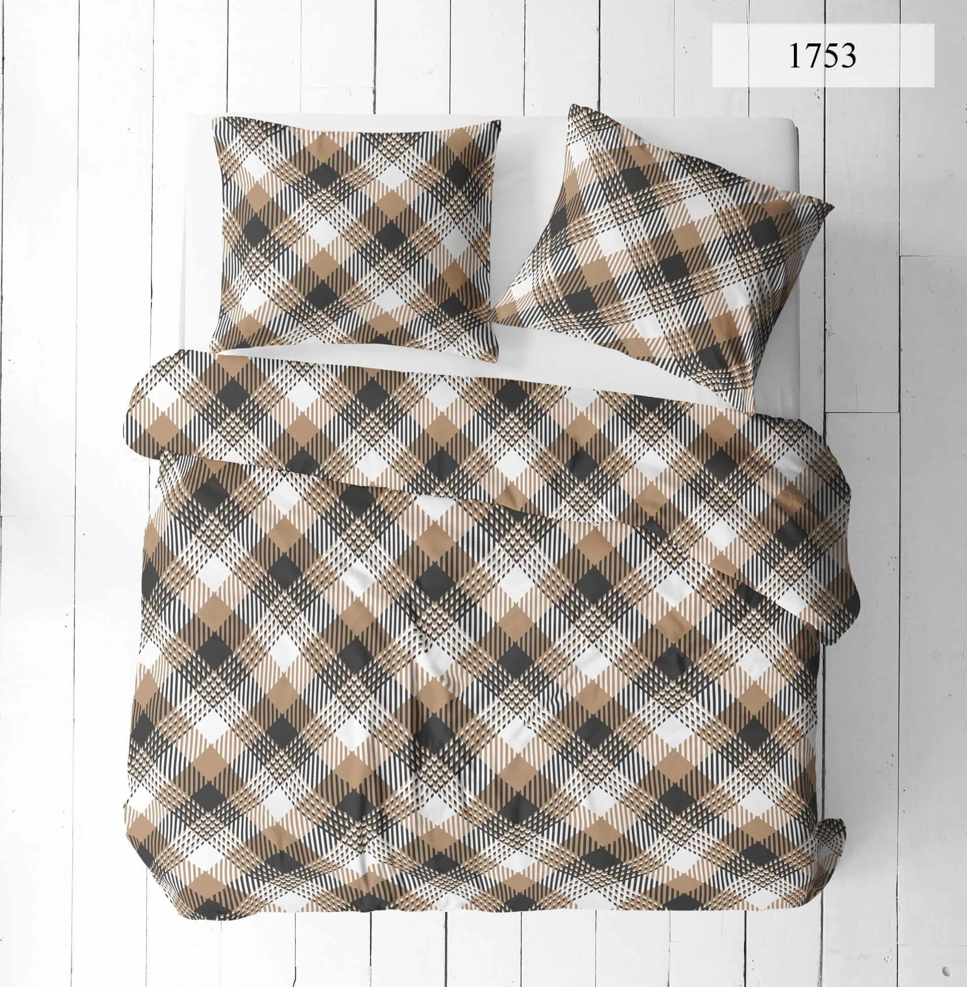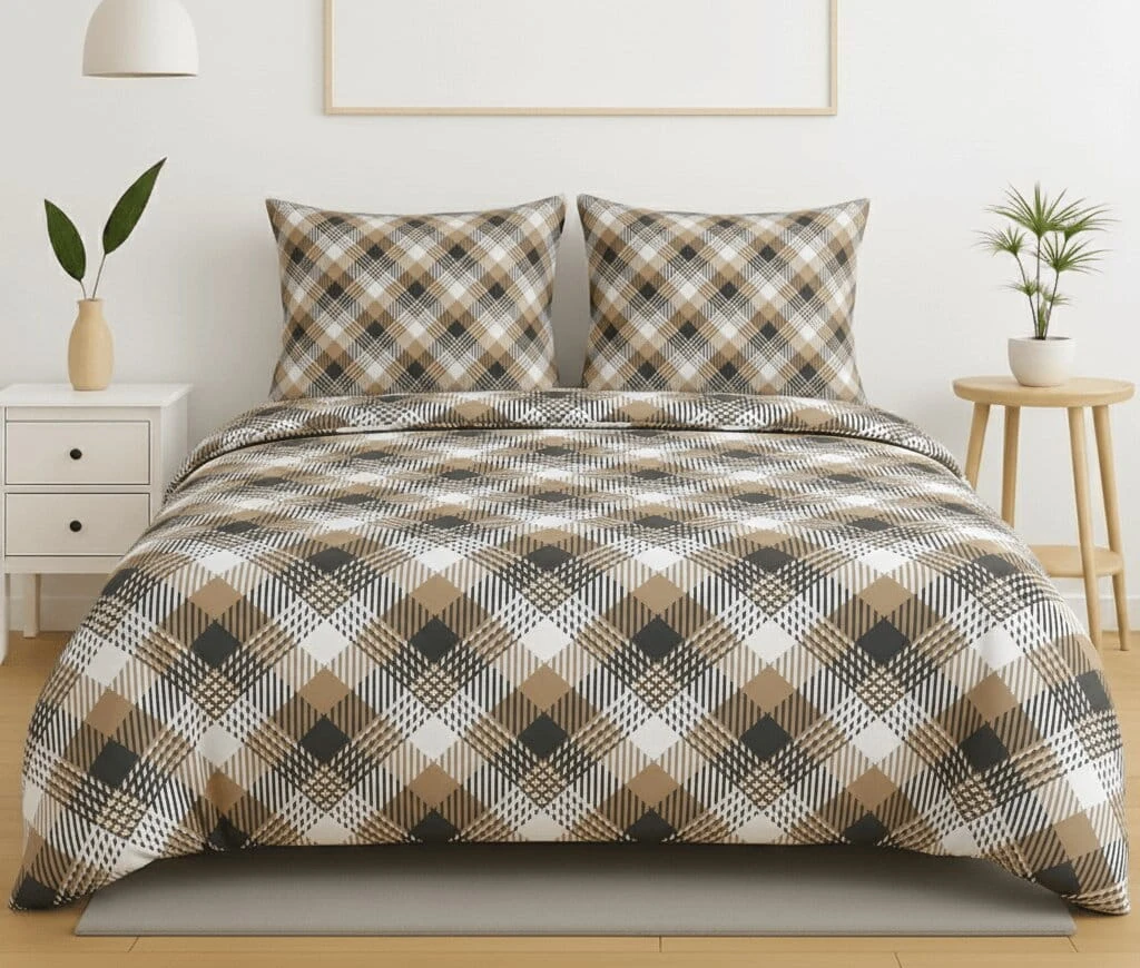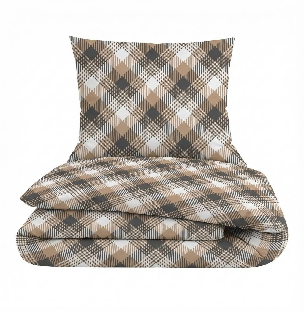Komplet pościeli bawełnianej 200x220 + 2 szt. Poszewka 70x80 SUWAK 100% bawełna BEŻOWA KRATKA