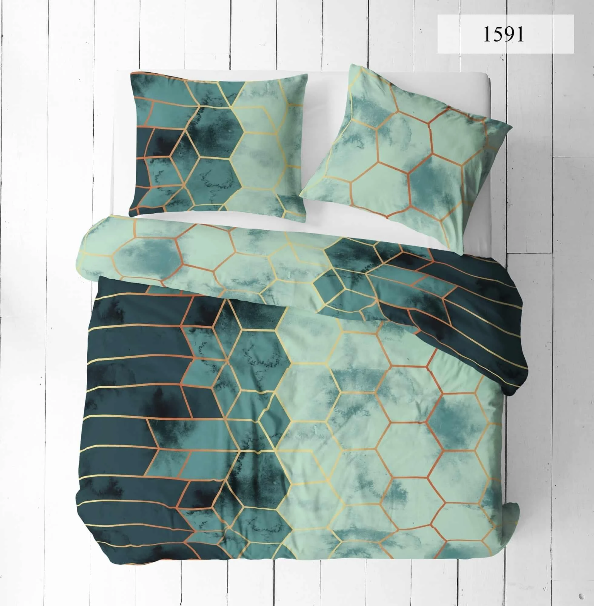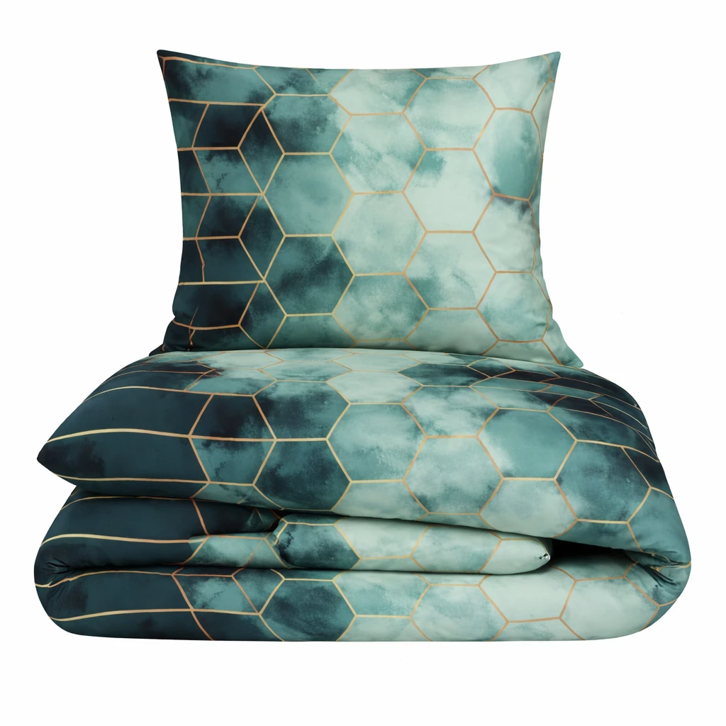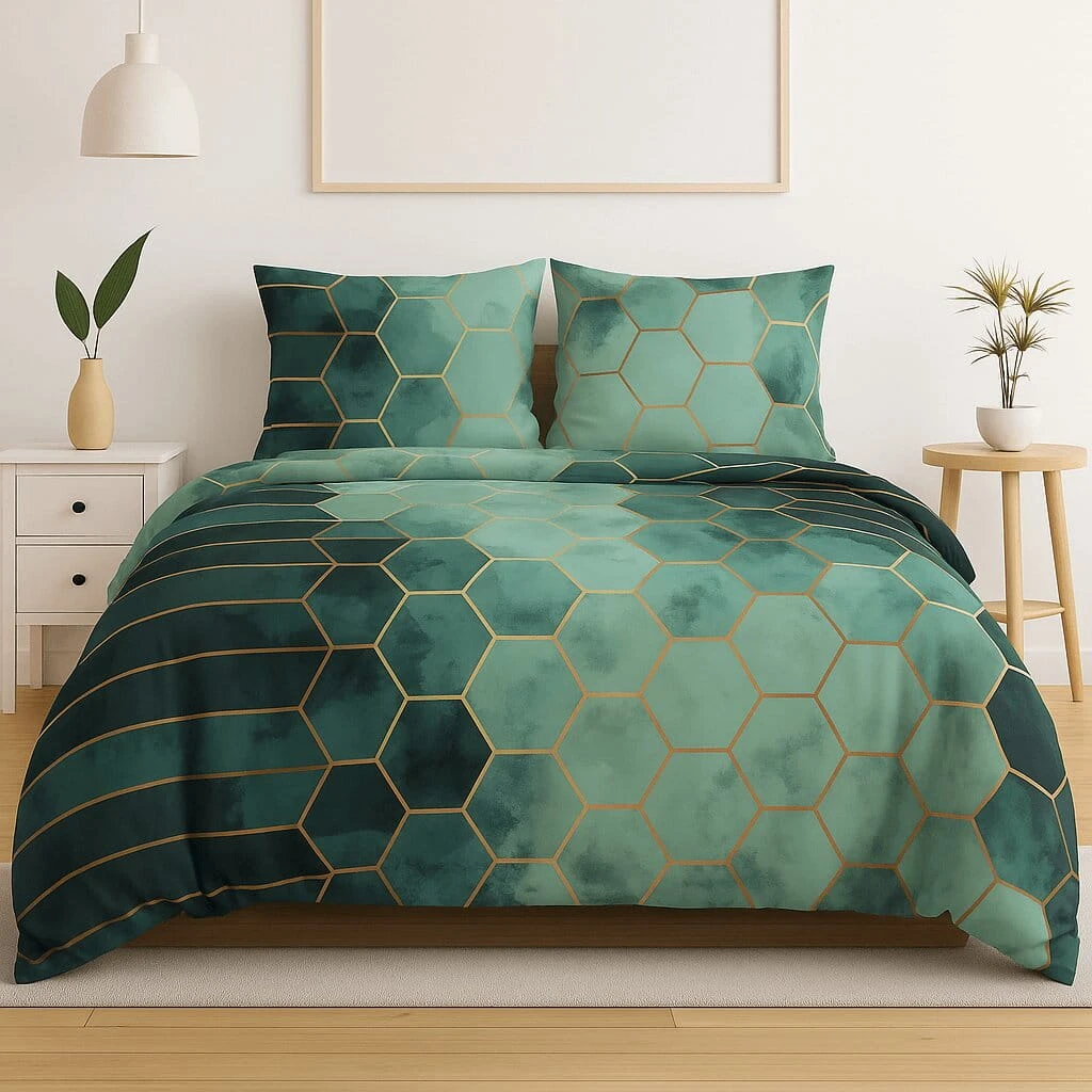 Komplet pościeli bawełnianej 200x220 + 2 szt. Poszewka 70x80 SUWAK 100% bawełna ZIELONE PLASTRY MIODU