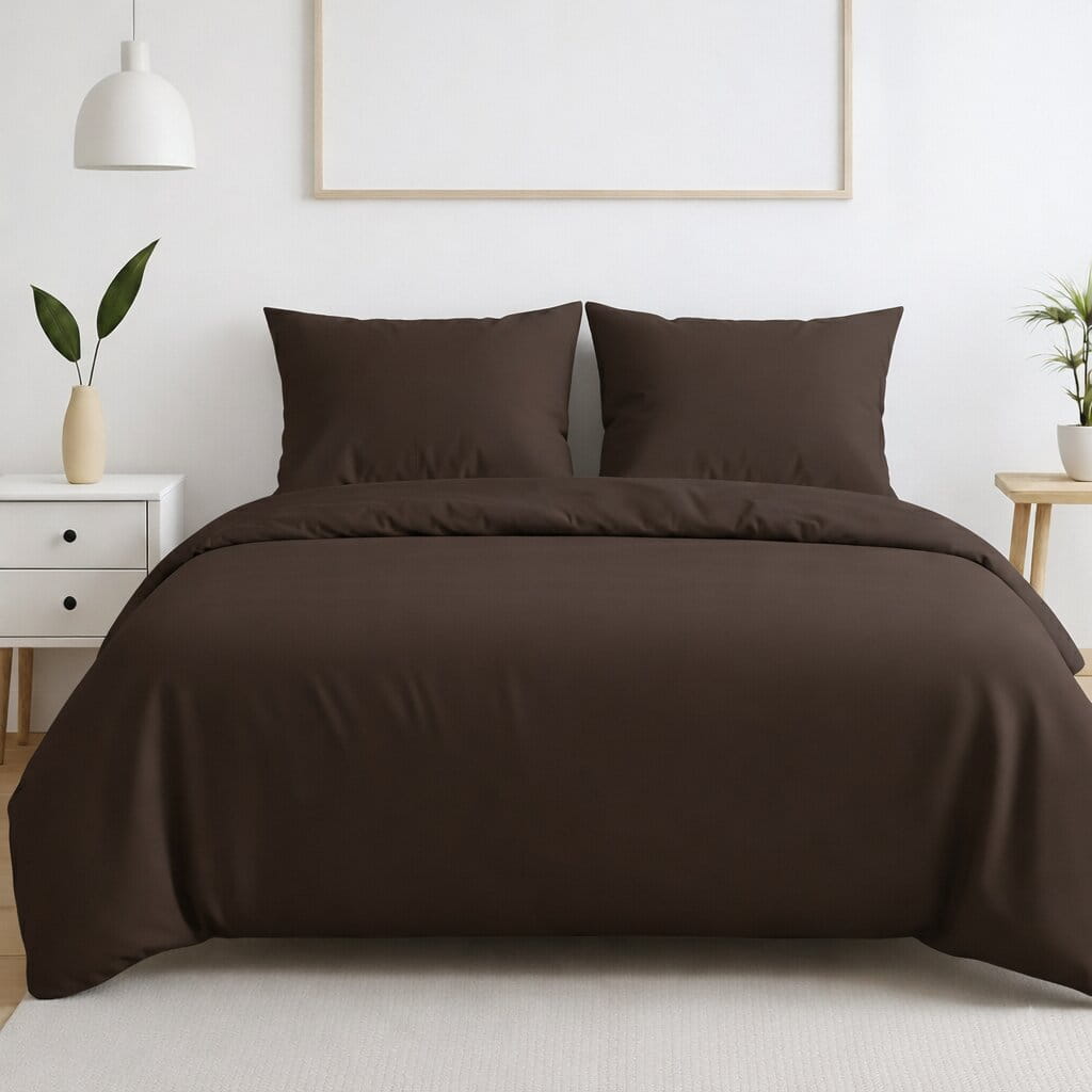 Komplet pościeli bawełnianej JEDNOBARWNEJ 160x200 + 2 szt. Poszewka 70x80 SUWAK 100% bawełna BRĄZOWY
