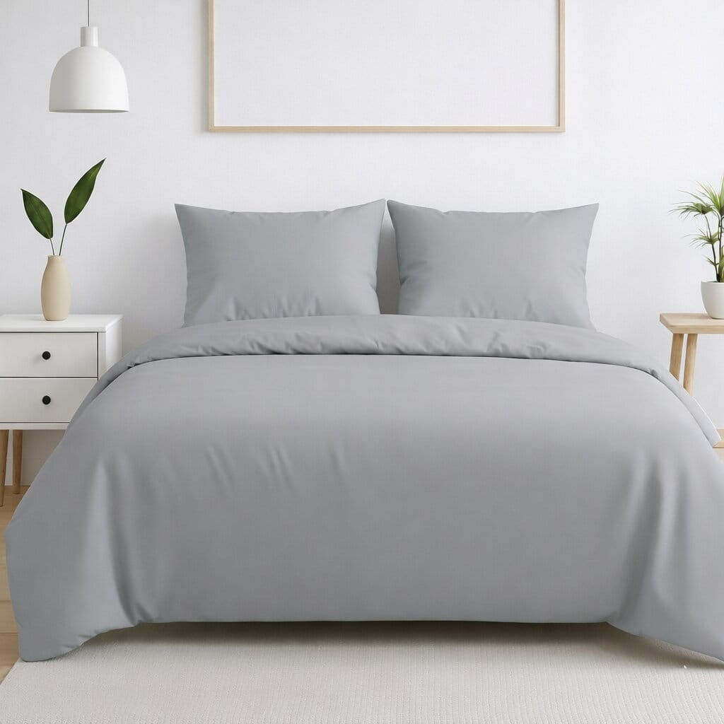 Komplet pościeli bawełnianej JEDNOBARWNEJ 160x200 + 2 szt. Poszewka 70x80 SUWAK 100% bawełna SZARY