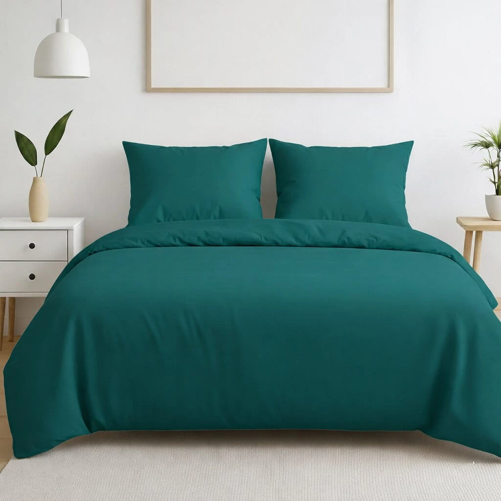 Komplet pościeli bawełnianej JEDNOBARWNEJ 160x200 + 2 szt. Poszewki ZAKŁADKA 100% bawełna TURKUSOWY