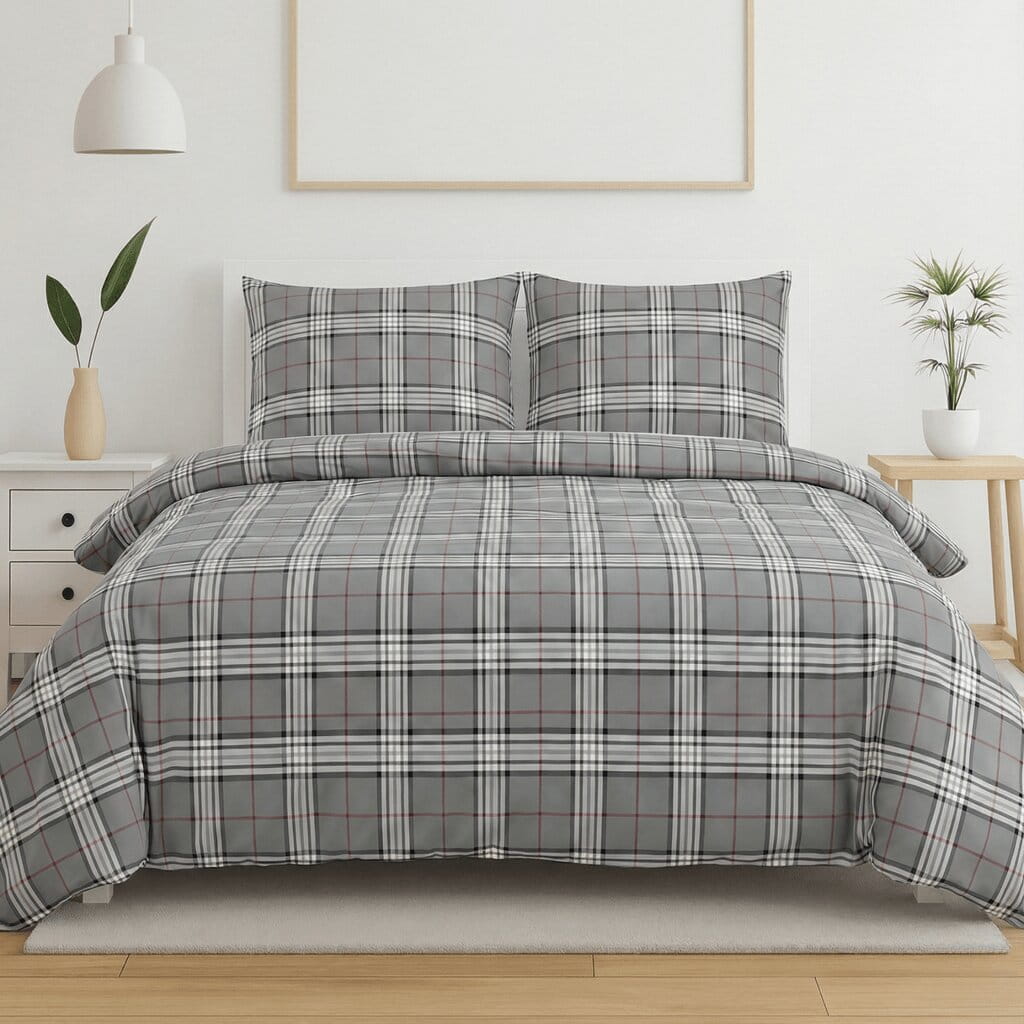 Komplet pościeli z kory 140x200 + 1 szt. Poszewka 70x80 SUWAK 100% bawełna KRATKA OXFORD