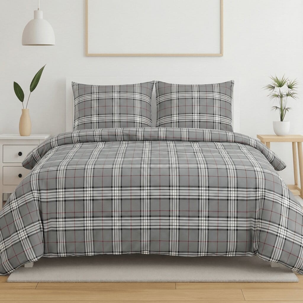 Komplet pościeli z kory 160x200 + 2 szt. Poszewka 70x80 SUWAK 100% bawełna KRATKA OXFORD