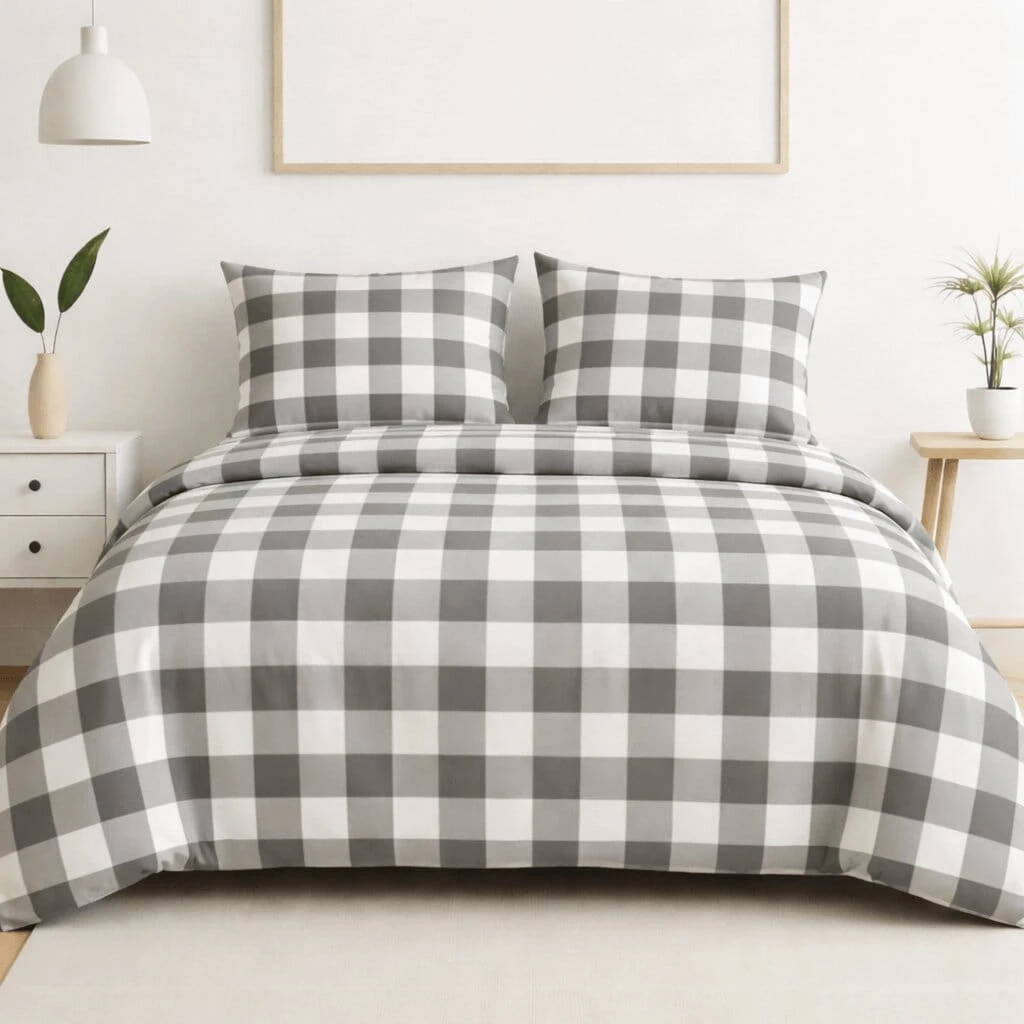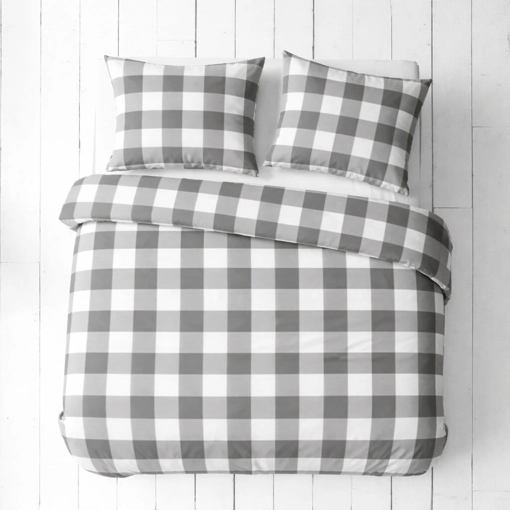 Komplet pościeli z kory 160x200 + 2 szt. Poszewka 70x80 SUWAK 100% bawełna KRATKA SZARO BIAŁA