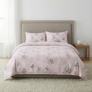 Komplet pościeli z mikrofibry 200x220 + 2 szt. Poszewka 70x80 SUWAK KWIATY NA RÓŻOWYM TLE