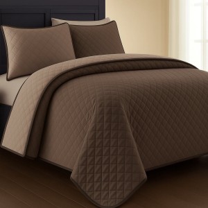 Narzuta dwustronna na łóżko i kanapę PIKOWANA rozmiar 140x200cm BEŻ/BRĄZ