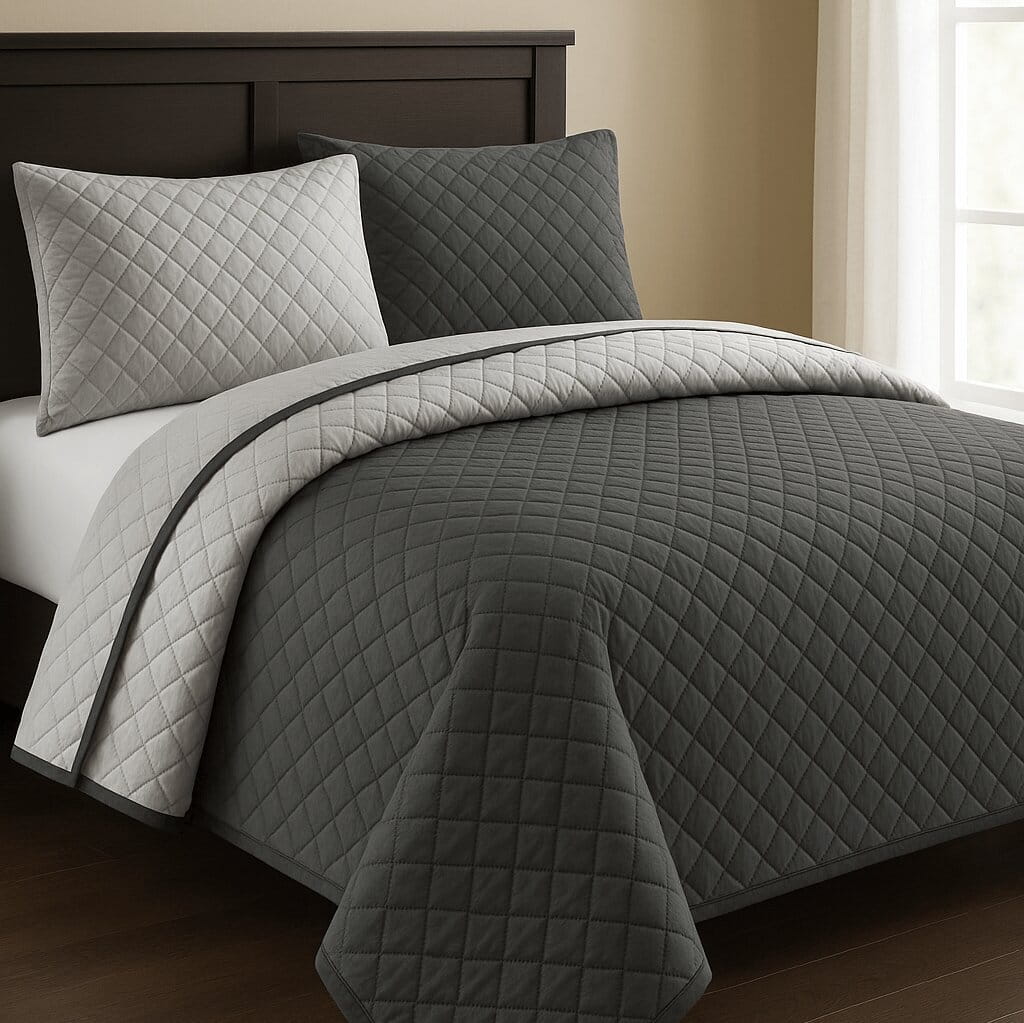 Narzuta dwustronna na łóżko i kanapę PIKOWANA rozmiar 160x200cm SZARY/GRAFIT
