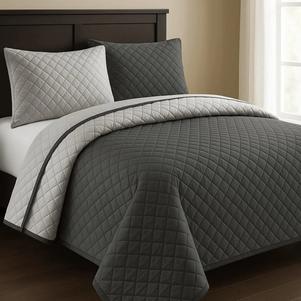 Narzuta dwustronna na łóżko i kanapę PIKOWANA rozmiar 180x200cm SZARY/GRAFIT